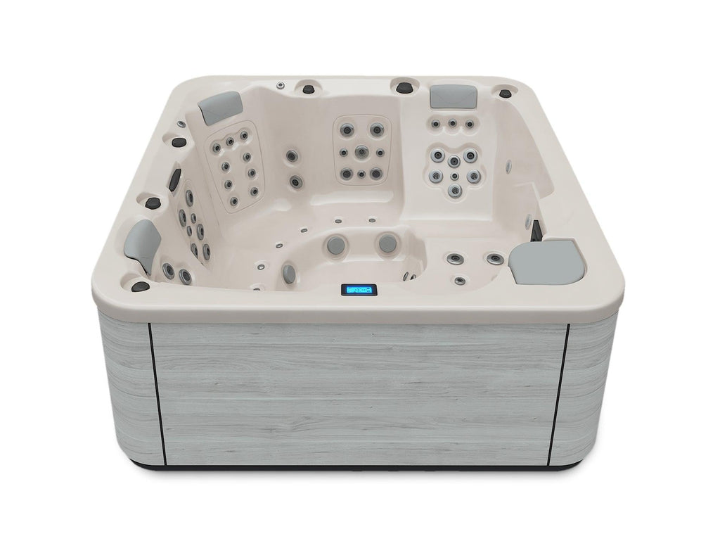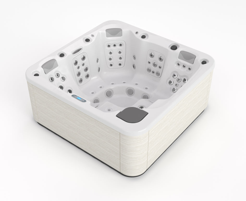 De Aquavia Spa Essence is een 5-persoons spa die van alle gemakken en comfort is voorzien. In deze spa wordt de ruimte (216 x 216) optimaal benut. De spa biedt de gebruikers een algeheel gevoel van welzijn dankzij de 2 tegenover elkaar in L-vorm opgestelde ligplaatsen en de 3 zitplaatsen die daar als een waaier omheen liggen.